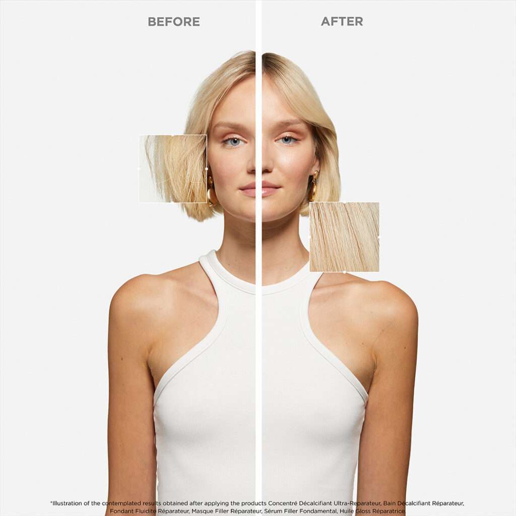 Produkty řady Premiére Kérastase vlasy dokonale obnoví a zbaví je nadbytečného vápníku, který se v nich usazuje. Aktivní složky obnoví keratinové vazby, regenerují vlas v hloubi i na povrchu a navrací vlasům 99 % jejich původní síly! Výsledek je ohromující. Vlasy jsou 4krát lesklejší a 10krát méně lámavé.
